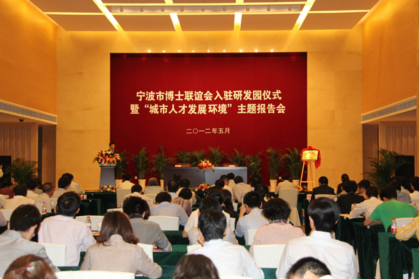 在当天会议上,首先进行了市博联会入驻研发园典礼,宁波市政府副秘书长兼市博联会理事长张乐鸣、宁波市委组织部副部长张良才、宁波高新区管委会主任王海国、副主任崔秀良、市委人才办副主任刘骏等相继发言。