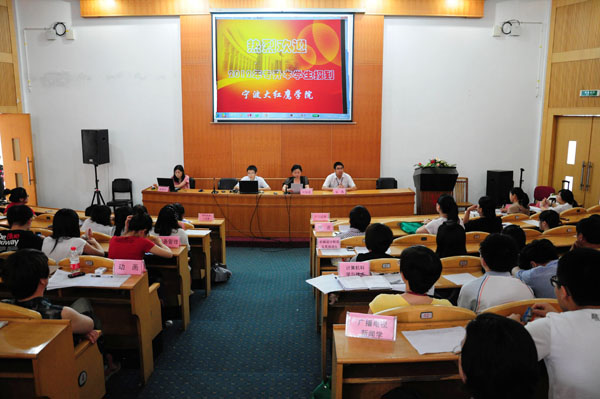 6月26日,我校迎来了2012年“专升本”学生。今年我校共有八个专业招收了115名“专升本”学生,生源来自浙江省38所高职院校。当天,教务处、学生处、财务处、招生办、后勤处和有“专升本”新生的二级学院相关人员参加了本次报到工作。