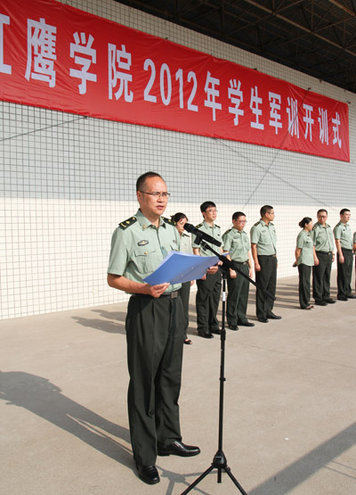 授旗仪式后,学生处处长、军训师政委吴勇作军训动员讲话。他要求全体参训人员以饱满的政治热情、积极的学习态度投身到军事训练中去;用科学的方法、严明的纪律开展好各项军训工作;牢固树立“安全第一”的指导思想,确保军训工作顺利进行。