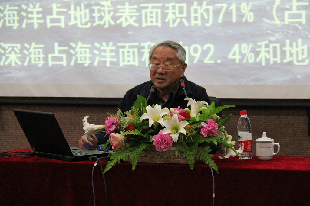 金翔龙院士的报告围绕“海洋经济与海洋资源、国际海底与大洋资源、海底探测技术、海洋研究与海洋权益保护”四个主题展开。他用缜密的科技数据、生动的前沿资料,为师生们详实讲述了中国海洋产业的发展现状,重点阐述了海洋研究在关系国民经济及国家安全重大问题中的应用,为大家揭示了中国海洋科学发展的愿景蓝图。