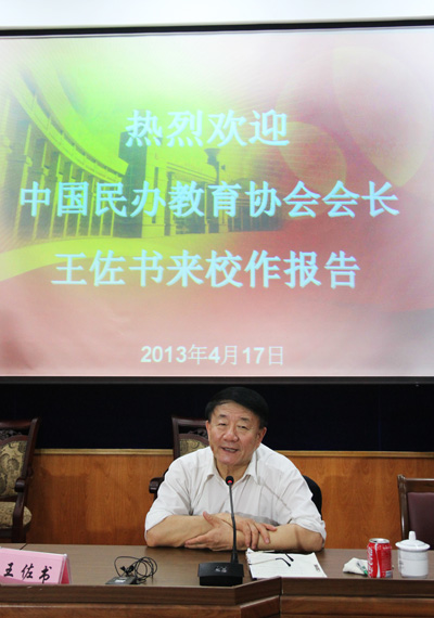 4月17日下午,全国人大常委会委员、全国人大教科文卫委员会副主任委员、民进中央副主席、中国民办教育协会会长王佐书在百忙中应邀为我校干部教师作了题为《教育与教学目的研究》的专题报告。