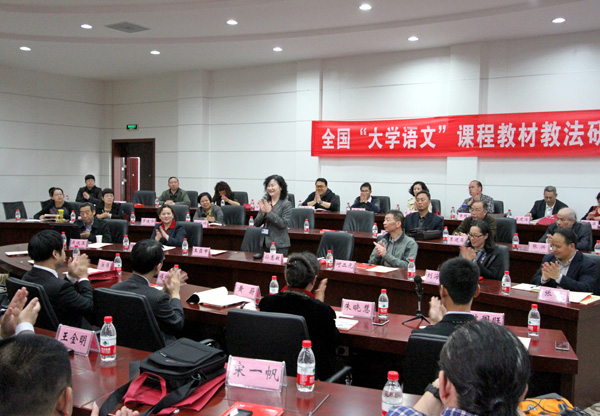 4月12、13日,由人民出版社和我校共同举办的“全国大学语文课程教材与教法研讨会”在9号楼地理信息中心召开。教育集团总裁、校党委书记孙惠敏出席并致辞。会议特邀《人民日报》(海外版)、《光明日报》、《中国教育报》资深专家和一线记者以及各高校的语文教育研究专家作专题报告。来自北京科技大学、中南财经政法大学、新疆农业大学、山东师范大学等国内30多所大学的大学语文教师和山东、福建等省语委办的语言文字工作者参加了会议。人文学院院长王臣申主持了会议。