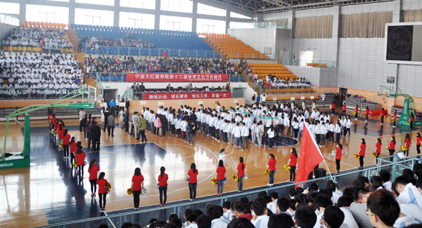 4月18日下午,我校第十二届体育文化节开幕式在体育馆举行。校党委副书记林长兴,校长助理许锁迪、何秋叶等出席开幕式,参加仪式的还有相关部门负责人、各二级学院党总支书记以及教职工和学生代表队员等。