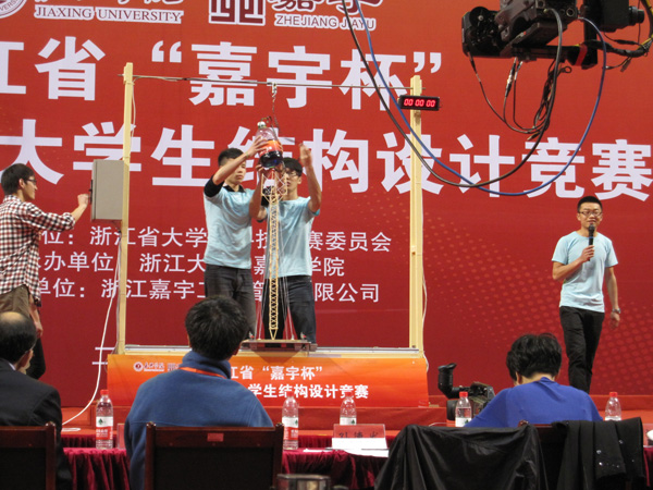 5月9日—11日,由浙江省大学生科技竞赛委员会主办,浙江大学、嘉兴学院承办的浙江省“嘉宇杯”第十三届大学生结构设计竞赛在嘉兴学院如期举行。我校由李延芳、刘玉老师指导,张琦、乐介东、苏加斌等同学组成的“人在塔在”队,和由陈祥、武晓云老师指导,何寒、张超、杨勇等同学组成的“狼牙之塔”队荣获本科组二等奖。
