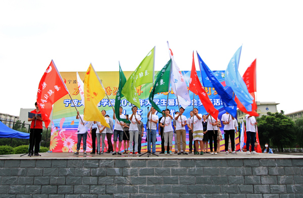 仪式上,教务处副处长陶若平宣读了2014年校级重点暑期社会实践团队名单,包括“爱行四方”、“爱行甬城,筑梦青春”、“一米阳光”等共22支暑期社会实践团队。