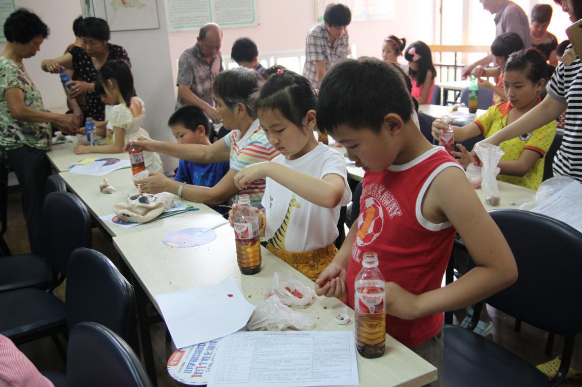 校社联“蓝盾’暑期社会实践团队教孩子们制作环保酵素