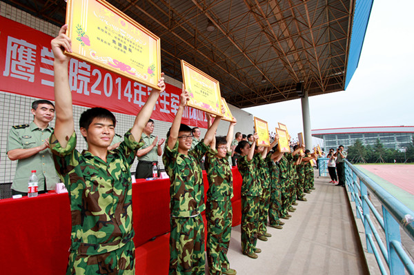 2013级学生军训活动在嘹亮的军歌声中圆满闭幕。