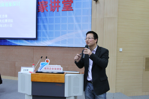 11日,王志锋总经理在阶梯教室203室为广大师生主讲“社媒趋势与社群经济”报告,详细阐述了微商现象,并分享了他的观点和看法。