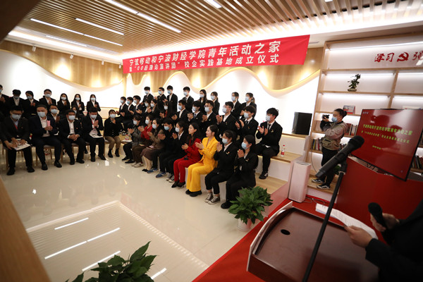 在与会领导的见证下,校企双方代表共同为“青年活动之家”、宁财青年“00后理论宣讲团”工作室揭牌,为我校李悦婷等10名“00后”理论宣讲员、3位校外特聘讲师颁发聘书。
